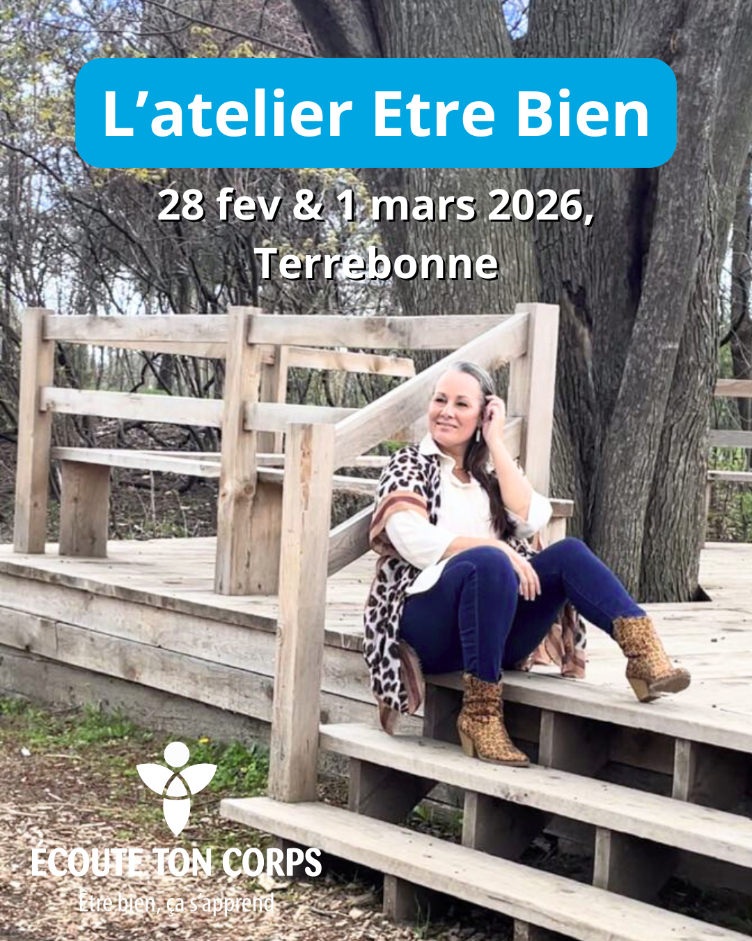 Note importante: pour l'atelier ÊTRE BIEN, tu dois procéder à une inscription distincte pour chacune des 2 journées.